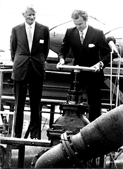Det hjalp på handelsbalancenDet blev der lavet om på fra 1972. Starten på eventyret var, da Prins Henrik, overvåget af Mærsk Mc-Kinney Møller åbnede hanerne på tankskibet Marie Mærsk, og olien strømmede i land på Stigsnæs. Det fik afgørende betydning for den velstand Danmark har i dag. Ikke alene blev vi selvforsynende med olie og senere gas. Olien indbragte også store summer i afgifter til Staten.
