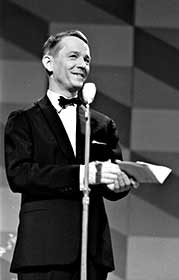 Bent Fabricius-Bjerre var konferencier Bjørn Tidmand gør sin entré på scenen.