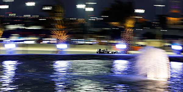 Stemningsbillede: Formel 1 i mørke - i Bahrain køres det meste i mørke - i kunstigt lys. Her Jenson Button. Se billederne af Kevin. Foto: McLaren
